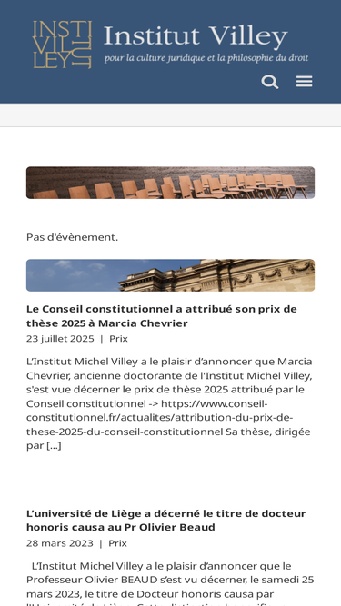77%Web design Martin Hullebroeck Kamel Ajji Erizo (@erizoandco) Charte graphique Catherine Szpira (szpirales.com) : logos et identité graphiques originaux de l'Institut Michel Villey, des revues Droit & Philosophie et Jus Politicum. Photographies Benjamin Balázs (unsplash.com/@brenkee), Bird At Sunset, 2016 (détail) Daniil Kuželev (unsplash.com/@kuzelevdaniil), Empty Chairs, 2017 (détail) James Bold (unsplash.com/@jamesbold), Nighttime Reading, 2017 (détail) Brandi