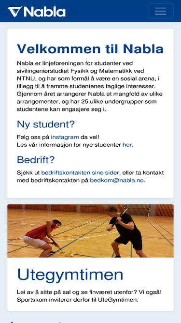 86%Hjemmesiden til linjeforeningen Nabla, for studentene på fysikk og matematikk-masterprogrammet på NTNU.