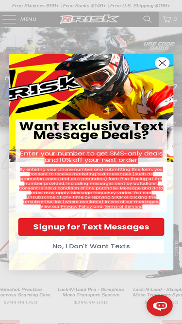 95%Risk Racing designs and creates the most innovative motocross, dirt bike, & ATV gear & accessories. On this site you will find award winning products like, The Holeshot Practice Starting Gate, Lock-N-Load, Palm Protectors, lifts, stands, grips, tools, lights, riding gear, gloves, utility jugs, fuel jugs, gas cans...