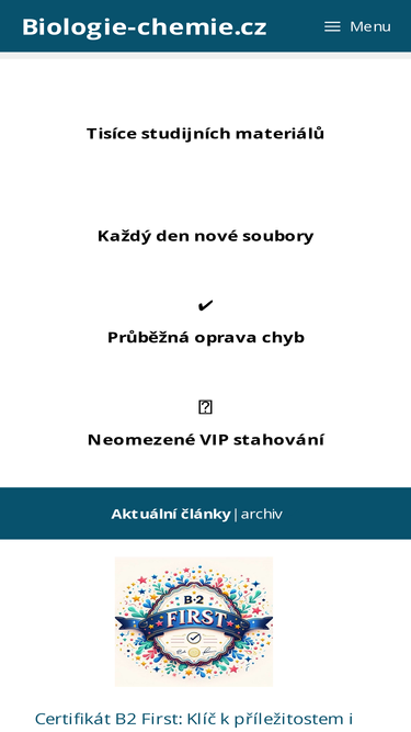 98%Na této stránce najdete všechny naše maturitní otázky, seminární práce, referáty či jiné studijní materiály do hodin biologie. Ostatní předměty najdete v menu. Stahování těchto a dalších 15 000 materiálů je možné v rámci naší online akademie🧠.