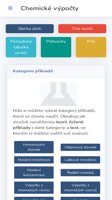 89%stránky pro procvičení, výuku a zopakování chemických výpočtů. ke stažení je zde i krátká sbírka úloh.