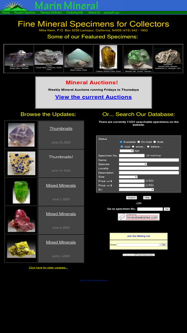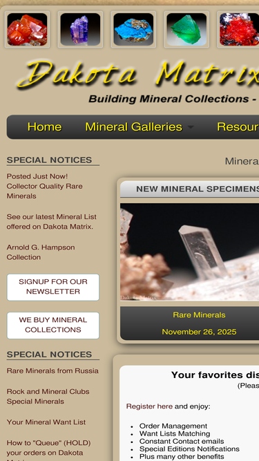 85%home page of hundreds of minerals for sale to mineral collectors from online mineral dealer. new minerals are added every week. all major credit cards are accepted.