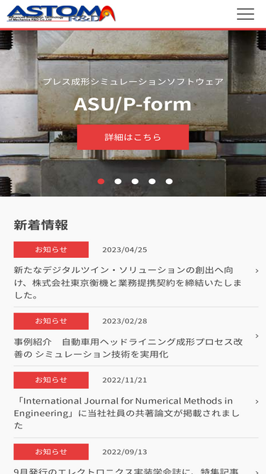 92%株式会社先端力学シミュレーション研究所(ASTOM R&D)のCAE技術を実用化し、ソフトウェアの提供にとどまらない専門技術でお客様の課題を解決に導いた事例と実績をご紹介いたします。