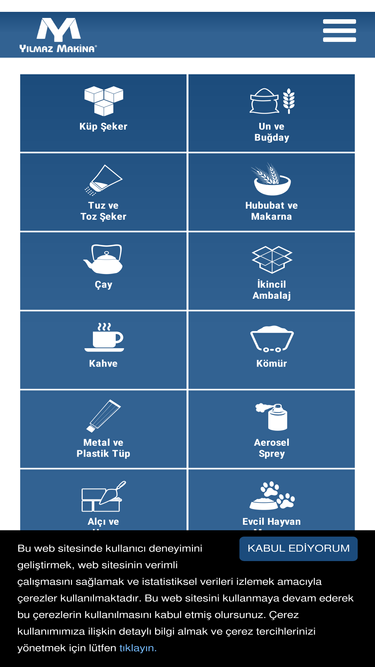30%yılmaz makina 6, 12.5, 25, 50 ve 65 ton kapasitede küp şeker üretim tesisleri yapmaktadır. küp şeker makinesinden entegre üretim ve dolum tesislerine, sert şeker presleme makinasından, kömür üretim ve paketleme tesislerine, nargile kömürü üretim tesislerinden, kağıt poşet dolum makinesine kadar bir çok makine üretimi gerçekleştiren yılmaz makine stickpack stick paketleme makinesi (3’ü 1 arada), çay dolum makinesi, kraft sarma makinesi, kolileme makineleri, ikincil ambalajlama makineleri, kutulama makineleri, kare paketleme makinesi üretimi de yapmaktadır.