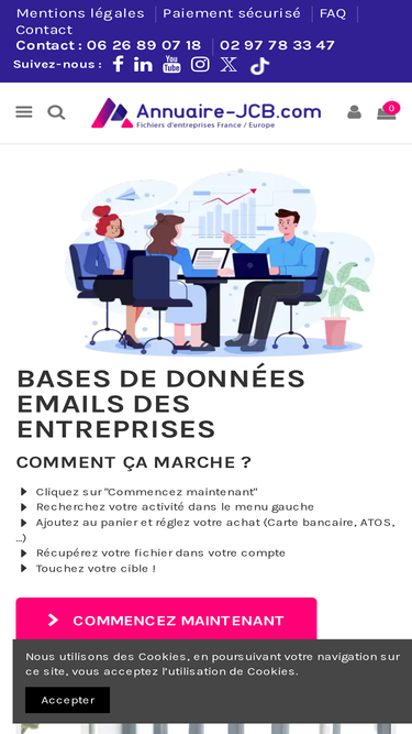 67%Annuaire JCB vous propose l'achat de fichiers de prospection d'entreprises à télécharger directement en ligne (adresses, emails, téléphones)