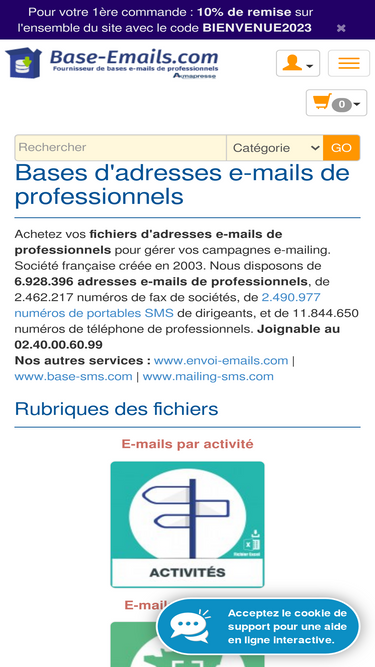 72%Achetez vos fichiers d'adresses e-mails de professionnels pour gérer vos campagnes e-mailing, fournisseur de bases d'adresses e-mails professionnelles.