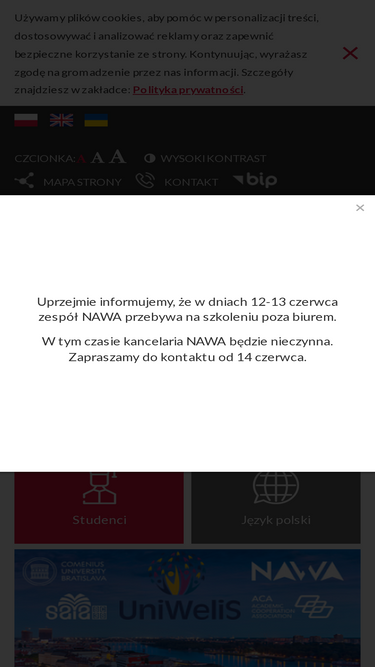 100%W przypadku pytań dotyczących apostille i legalizacji, na które nie udało Ci się znaleźć odpowiedzi na naszej stronie internetowej, możesz się z nami skontaktować mailowo: Biuro Uznawalności Wykształcenia Narodowa Agencja Wymiany AkademickiejPolna 40, 00-635 Warszawa mail: apostille@nawa.gov.pl Biuro Uznawalności Wykształcenia NAWA uprzejmie informuje, że w celu zapewnienia terminowej realizacji wniosków o apostille i uwierzytelnienie, od dnia 1 maja 2025 r. telefon dyżurny jest nieczynny (do odwołania). Wniosek o poświadczenie dokumentów można złożyć w Kancelarii NAWAod poniedziałku do piątku w godz. 8:30-16:30.Nie jest wymagana rezerwacja wizyty w celu złożenia dokumentów. Kancelaria nie zajmuje się weryfikacją złożonych wniosków. Jeżeli wniosek będzie niekompletny, stosowną informację mailową wyślemy do Ciebie lub Twojego pełnomocnika.
