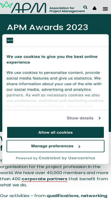 85%apm is the chartered membership organisation that provides membership, qualifications, events and publications for project professionals.