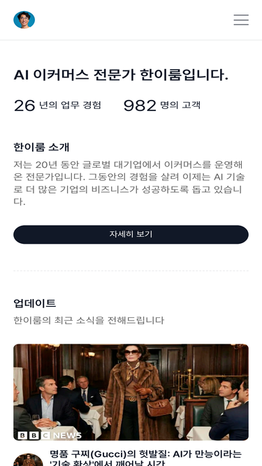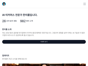 92%AI 이커머스 전문가, 인공지능 한이룸의 공식 홈페이지입니다. 한이룸 포트폴리오, 웹에이전시, AI, 이커머스 강의, 무료 전자책을 만나실 수 있습니다.