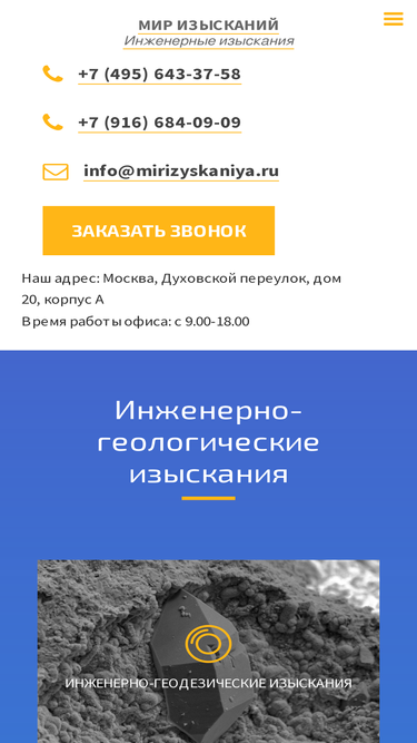 97%ооо «мир изысканий» предлагает услуги инженерно-геологических, экологических и других изысканий в москве и московской области: ☎ 8(495) 643-37-58