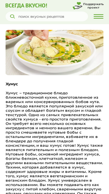 92%крупнейшая база из свыше 114 тысяч кулинарных рецептов с удобной системой поиска, рецепты около 100 кухонь народов мира, много рецептов с фото, видео, пошаговым описанием приготовления.