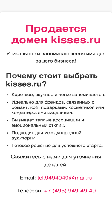 99%kisses.ru - 300000₽ (4723$). domain is parked by service domainparking.ru