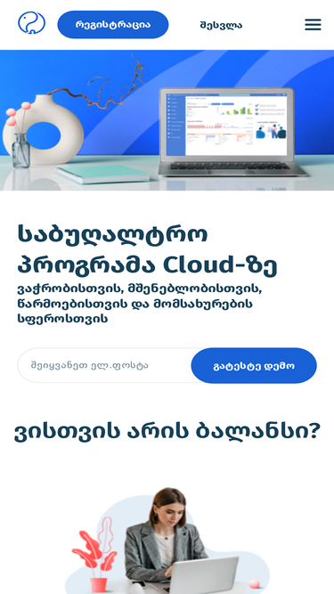 100%საბუღალტრო პროგრამა ბალანსი: ვაჭრობის, წარმოების, მშენებლობის, საწყობების აღრიცხვისა და მართვისთვის