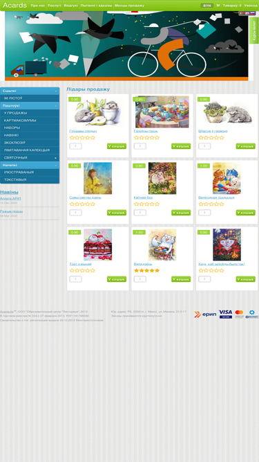 89%авторские открытки для посткроссинга, декоративные, информационные и адресные наклейки, магниты более 70 художников, иллюстраторов и фотографов. среди них открытки, магниты, наклейки юрия подвербного, алеси дерр, ирины зенюк, виктора малыщица, романа федосенки, игоря римашевского, евгении чистотиной, леонида афремова, виктора низовцева, алексея долотова, екатерины бабок, олега шупляка, лии селины и многих других.