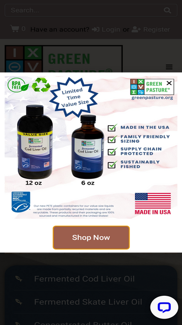 82%Discover Green Pasture Fermented Skate Liver Oil a natural source of vitamins A & D and omega fatty acids, crafted through traditional fermentation.