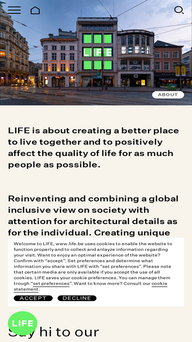 100%We are LIFE Developers. We form spaces where life comes first. With our human approach, we create & transform, connect people and envision tomorrow.