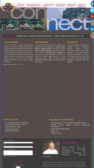 100%About Us The Aberdeen Carolina and Western Railway Company is the largest privately held shortline or regional railroad in North Carolina. The ACWR is a dual-served shortline, which means we interchange with Norfolk Southern in Charlotte, NC, and CSX Transportation in Aberdeen, NC. This valuable feature offers our customers access to the entire national railroad