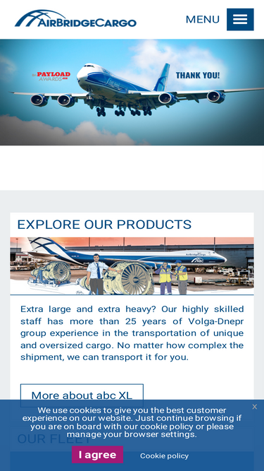 66%airbridgecargo is one of the leading international all cargo airlines. from healthcare products to xl cargo, live animals and beyond, we can take your cargo almost anywhere. always, worldwide.