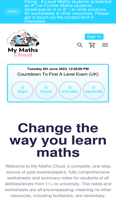 82%Welcome to MyMathsCloud. Private Maths tutor in London and Maths revision & resources provider of 11 +, GCSE, AP, IB, A Level and University past exam papers, practice papers, revision notes, questions by topic and cheat sheets.