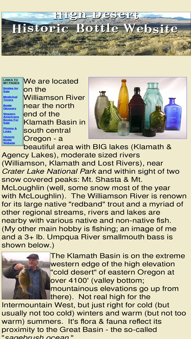 100%the high desert historic bottle website provides information about mouth-blown american-made bottles made beteween the late 18th and early 20th century as well as a selection of quality bottles for sale.
