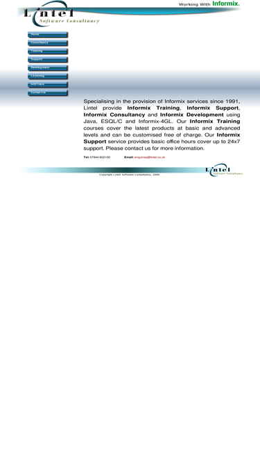 95%informix premier partner, based in chester, england. lintel provides consultancy, training, supply, support and bespoke development for informix databases.