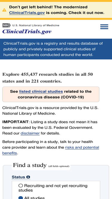 90%ClinicalTrials.gov is a website and online database of clinical research studies and information about their results