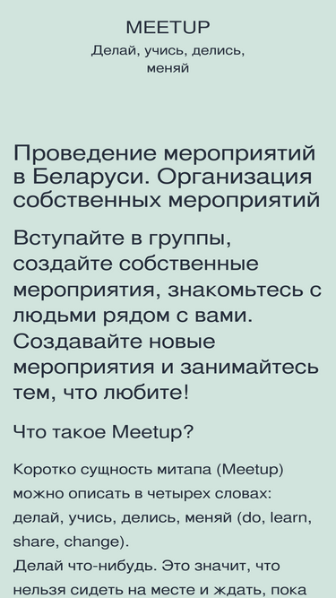 97%вступайте в группы, создайте собственные мероприятия, знакомьтесь с людьми рядом с вами. создавайте новое и занимайтесь тем, что любите!