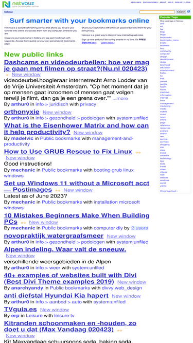 100%netvouz is a social bookmark manager where you can store your favorite links online and access them from any computer. you organize your bookmarks in folders and tag each bookmark with keywords and can then browse them by folder or tag, or search for them. you can make your bookmarks public or private, and if you have a blog you can also publish your bookmarks on it using our rss feed.