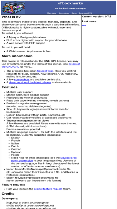 82%ol'bookmarks is an on-line bookmarks manager based on php with mysql or postgresql