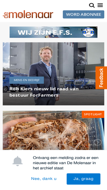 82%Login How can I access the online editions of De Molenaar view? The entire magazine can be browsed online. You will need an online account for this.