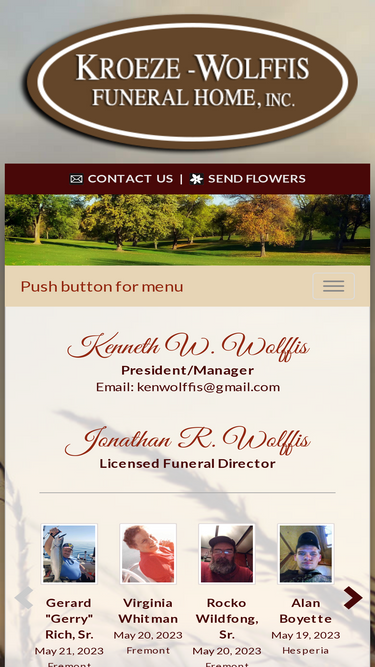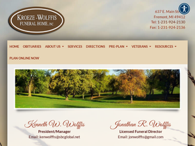 100%Contact Us - Kroeze-Wolffis Funeral Home, Inc. offers a variety of funeral services, from traditional funerals to competitively priced cremations, serving Fremont, MI and the surrounding communities. We also offer funeral pre-planning and carry a wide selection of caskets, vaults, urns and burial containers.