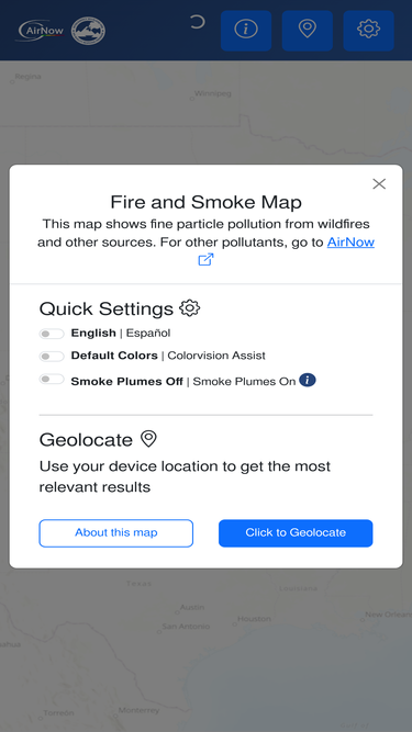 77%this map shows fine particle pollution (pm2.5) from wildfires and other sources. it provides a public resource of information to best prepare and manage wildfire season. developed in a joint partnership between the epa and usfs.