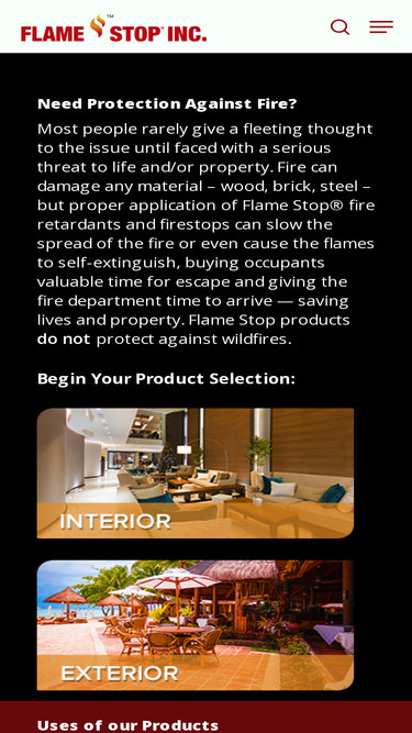 100%FlameStop™ fire reatardant spray and application for wood. Penetrates and bonds with the wood for over 5 years. Dries clear. Used by the U.S. Air Force.