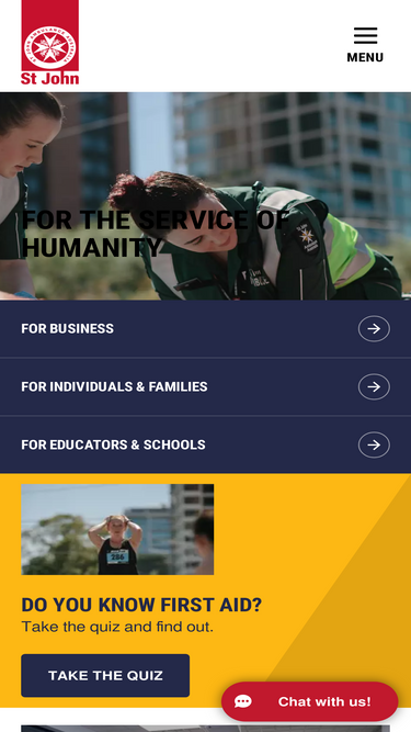 100%First Aid training services and First Aid kits. St John is your trusted partner in First Aid because when it comes to saving a life, Minutes Matter. St John – First Aid for Life.