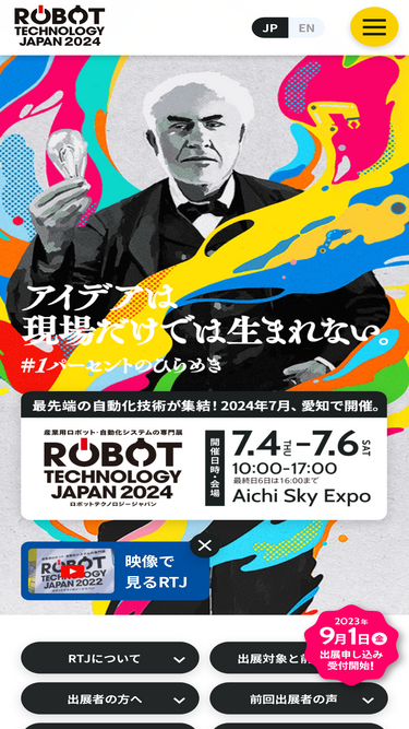 愛知のロボット展示会「ロボットテクノロジージャパン(RTJ)」は生産現場などで活用される産業用ロボットと自動化システムに特化した専門展示会です。2024年に愛知県国際展示場(Aichi Sky Expo)で開催予定です。