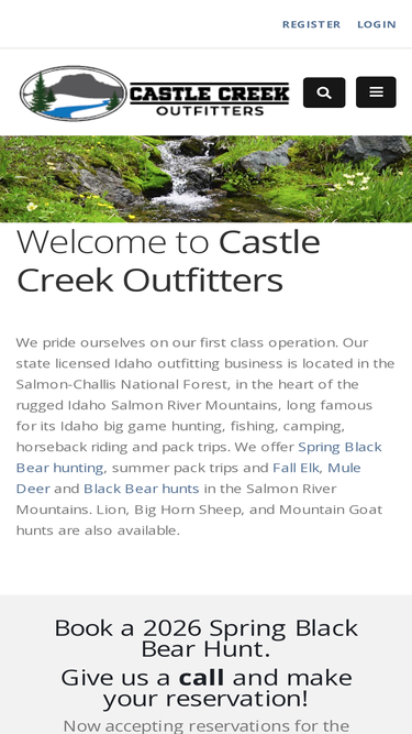96%castle creek outfitters provides idaho big game hunting - elk hunting, deer hunting and bear hunting in the idaho wilderness.
