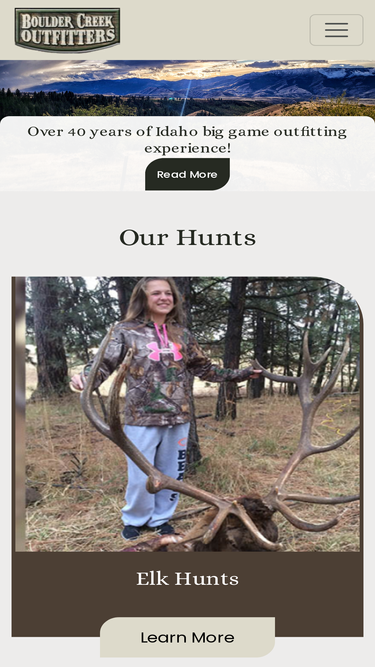 84%boulder creek outfitters. we specialize in bowhunting and elk hunting. our hunting trips include black bear, mountain lion, and deer hunting. we guide throughout idaho and nevada.