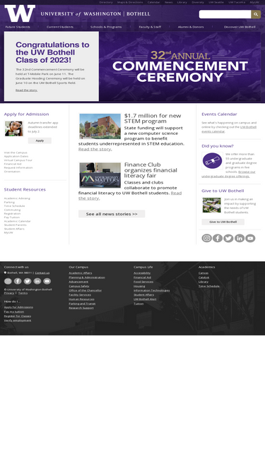 100%At UW Bothell, we emphasize experiential learning, hands-on research and community engagement. UW Bothell in 60 Seconds Get facts about our programs, diverse student body and commitment to sustainability — all in less than a minute. Stories of impact Learn more about the remarkable people and programs in the UW Bothell community. Academics We are...
