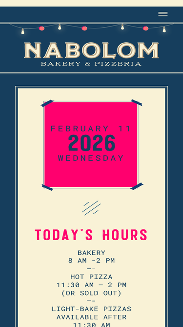 85%Nabolom Bakery & Pizzeria is a family friendly restaurant located in the Elmwood District in Berkeley, CA. We pride ourselves in serving one of a kind pizza, fresh baked goods, beer, wine and drip coffee.