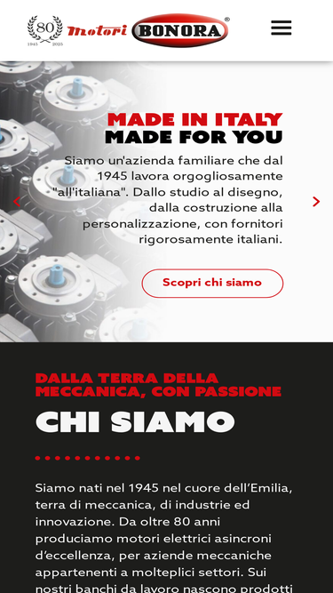 88%Da oltre 70 anni Motori Bonora produce motori elettrici asincroni d’eccellenza, per aziende meccaniche appartenenti a molteplici settori. Alta qualità made in Italy.