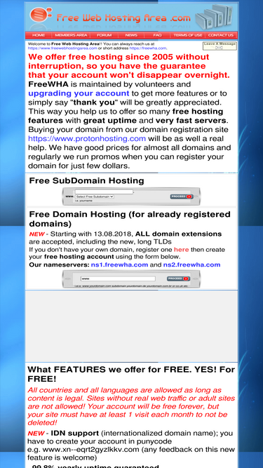 98%Free Web Hosting Area provides unmetered traffic and free web space for domain or subdomain with php, mail, mysql database, ftp on fast SSD drives
