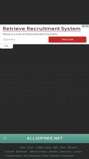 95%1miba provides free download of 3d models and 3ds max models.