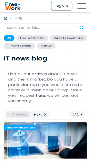 68%vous étés consultant ou ingénieur freelance informatique en recherche des missions ? sur notre site d’offres des missions et mise en relation pour les prestataires indépendants.