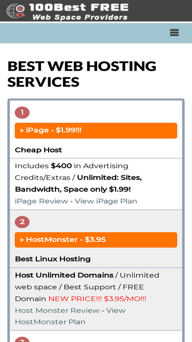 78%100 best free web space offers users free website hosting reviews on the best cheap web hosting providers and free hosting services. if you're looking for free web space with no ads, a quality low cost web host, or a business web hosting plan with lots of features - freewebspace has web hosting reviews & website tutorials