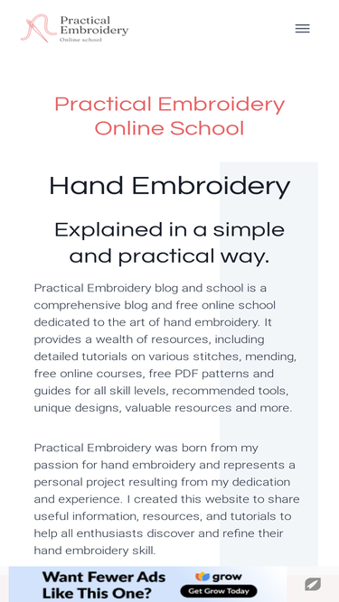 90%Practical Embroidery blog and online school is dedicated to hand embroidery, stitches, free courses, tools, designs and free patterns.