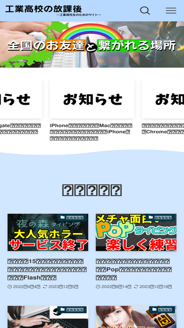66%「工業高校の放課後」は、学生必見の情報と交流の宝庫です。学業支援、資格取得のヒントから日常の豆知識まで、放課後の時間を有意義に過ごすための情報を提供。さらに、掲示板機能で全国の仲間と繋がり、学びと楽しみを共有する場所です。