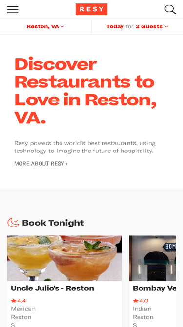 94%Discover restaurants to love in your city and beyond. Get the latest restaurant intel and explore Resy’s curated guides to find the right spot for any occasion. Book your table now through the Resy iOS app or Resy.com.