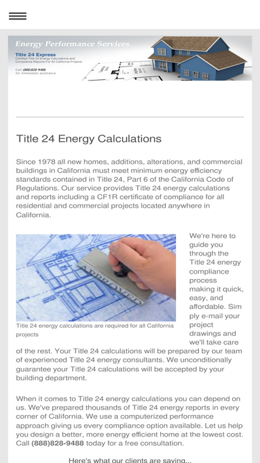 80%Title 24 calculations for all California projects, energy calculations, title 24 energy compliance forms, CEPE certified Title 24 energy consultants, experienced, low rates, fast turnaround. Call (888)828-9488 for a free consultation. Title 24 Express.