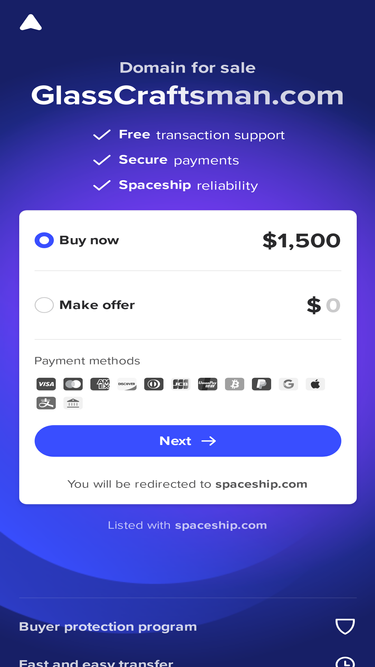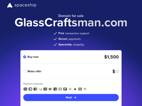 100%GlassCraftsman.com is for sale on Spaceship. Secure checkout and quick transfer. No hidden fees.