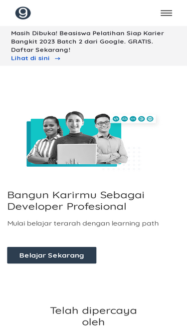 92%Jadilah developer expert menggunakan kurikulum standar internasional dari principal technology owner seperti Google, Microsoft, AWS, IBM, dan LINE.